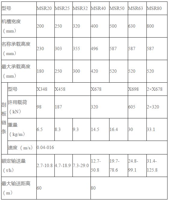 MSR型埋刮板輸送機(jī)技術(shù)參數(shù):