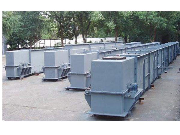 鏈式輸送機的規格性能列入表一。表中列出了各機型在不同鏈速下的輸送能力范圍。同樣的輸送量可以在表中選到不同的機型,若選用較大機型則鏈速較低、磨損小,但設備投資較高,若選用較小機型則鏈速 較快,磨損相對較高,但設備投資較省。應當指出,當實際輸送量達不到該機輸送能力的65%時,由于機槽內物料層過薄而造成輸送鏈空轉,也會增加設備的磨 損。因此,建議輸送機的實際輸送量不宜低于表一中輸送能力的最小值,以實際輸送量乘以1.2以后,也不宜高于表中輸送能力的最大值。